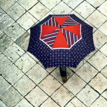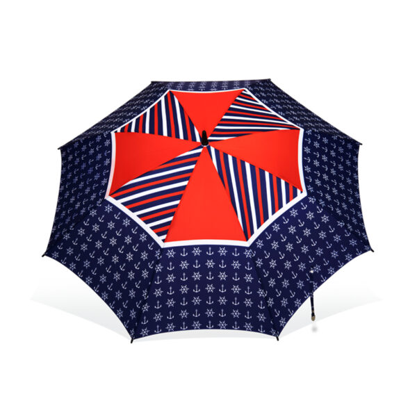 30” Long Golf Umbrella umbrella with FRP tube and ribs with wooden handle, with matching cloth case.