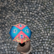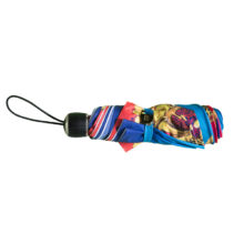Manual open threefold umbrella with Alu tube, Alu-FRP 8 ribs, Mat black and silver finish handle, design printedfabric with same print cloth case.